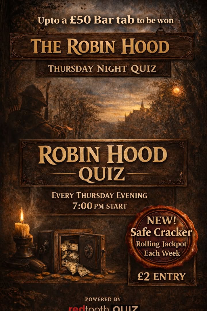 It's Thursday and that means one thing, Quiz Night. 7pm at The Robin Hood. Book your tables through our website. @top fans