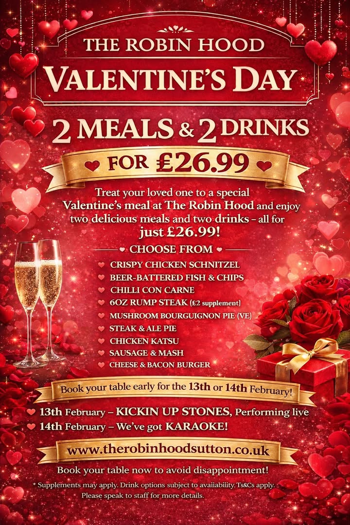 This week at The Robin Hood, Thursday is quiz night, Kickin up stone are this weeks fantastic band and then Saturday Nathan is singing all your favourite songs for valentines. We also have the 6 Nations Saturday and Sunday. There is always something for everyone at the Robin Hood, Book Tables through our website or just wonder on in. @followers